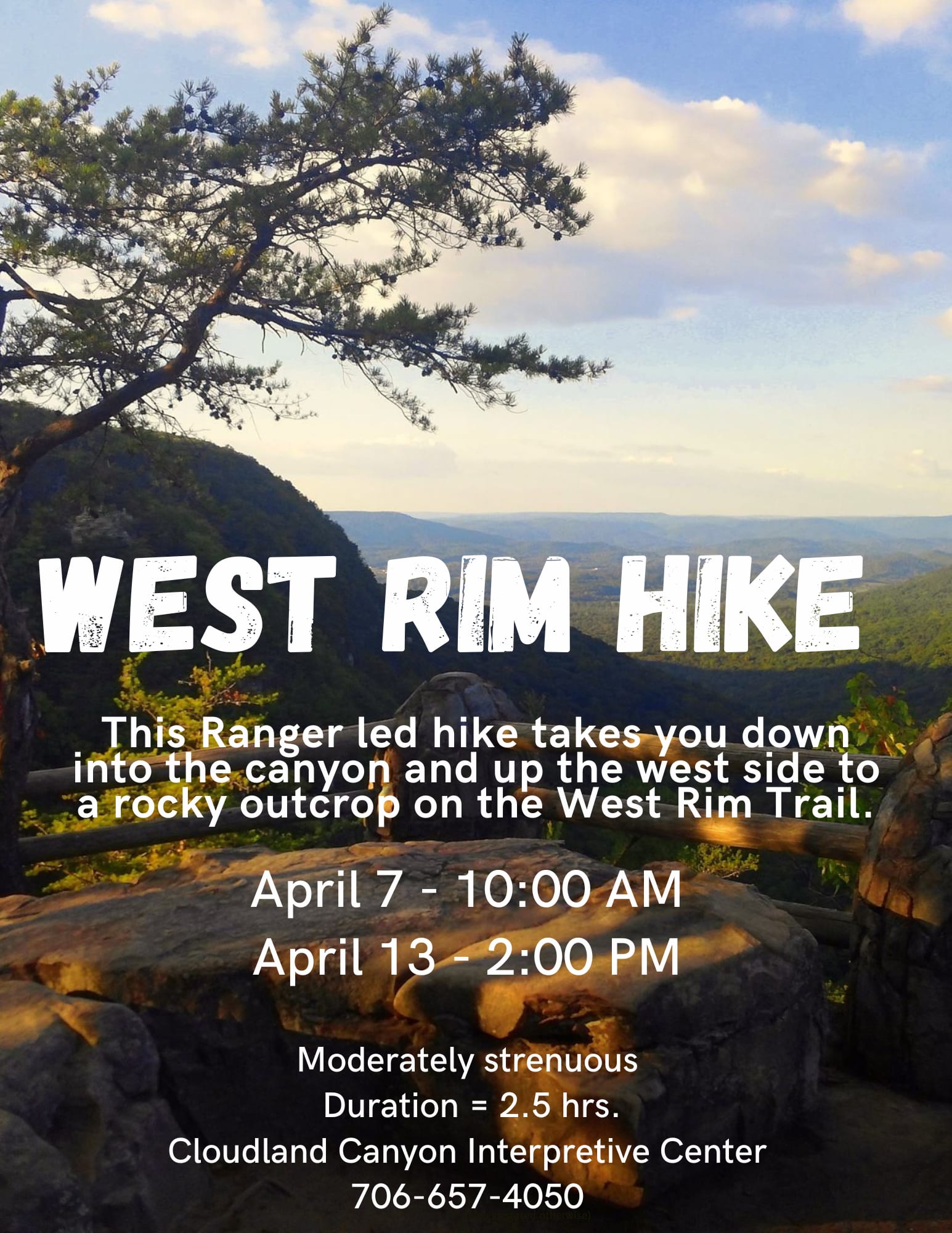 This ranger-led hike takes you down into the canyon and up the west side to a rocky outcrop on the West Rim Trail! This hike is moderately strenuous and lasts for 2.5 hours.Images